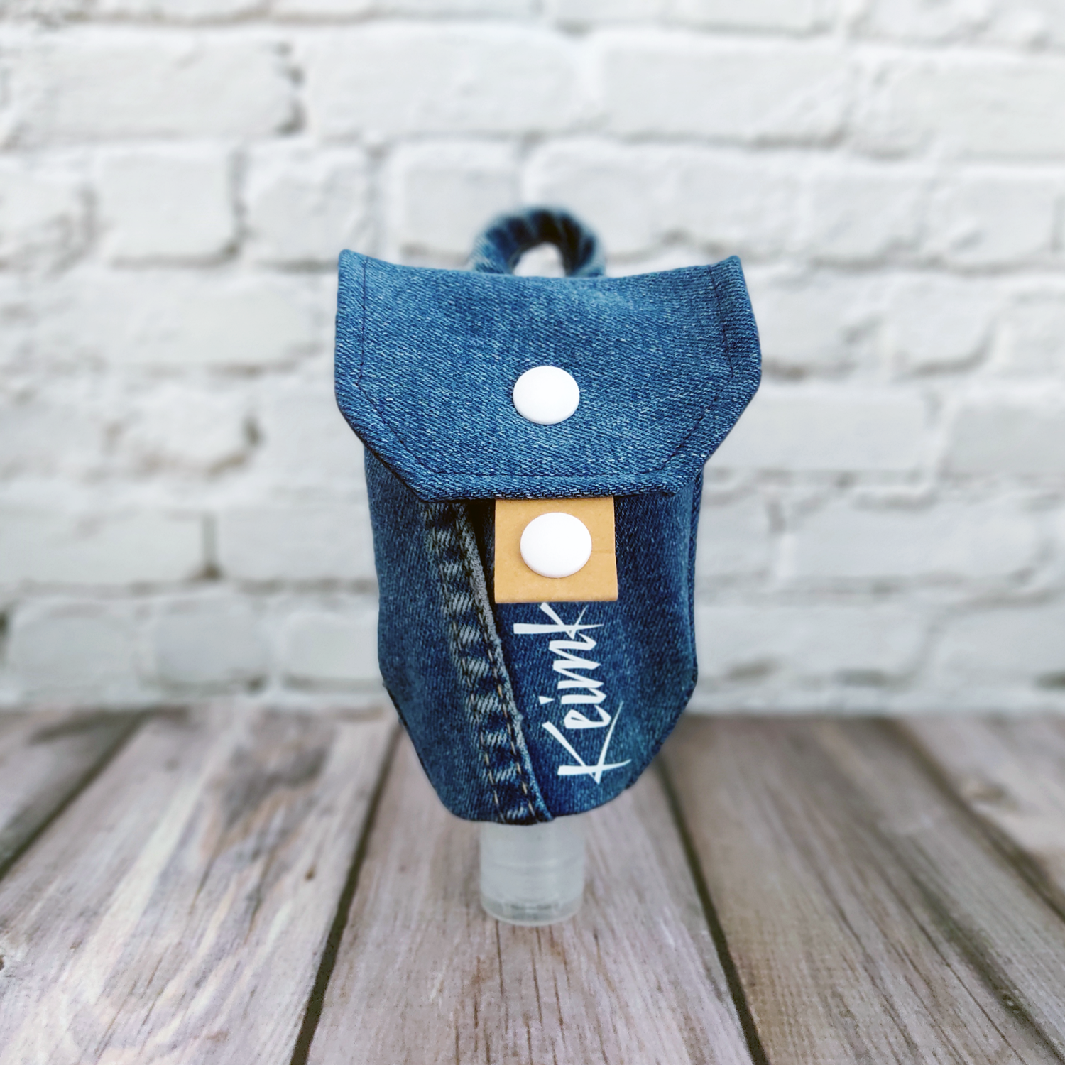 Die „Keimkiller“-Handgeltasche wird aus einer abgelegten Jeans gefertigt und ist damit ein echtes Upcycling-Unikat. So hast du nicht nur dein Desinfektionsmittel immer griffbereit, sondern leistest auch noch einen kleinen Beitrag zum Umweltschutz. 🌍♻️