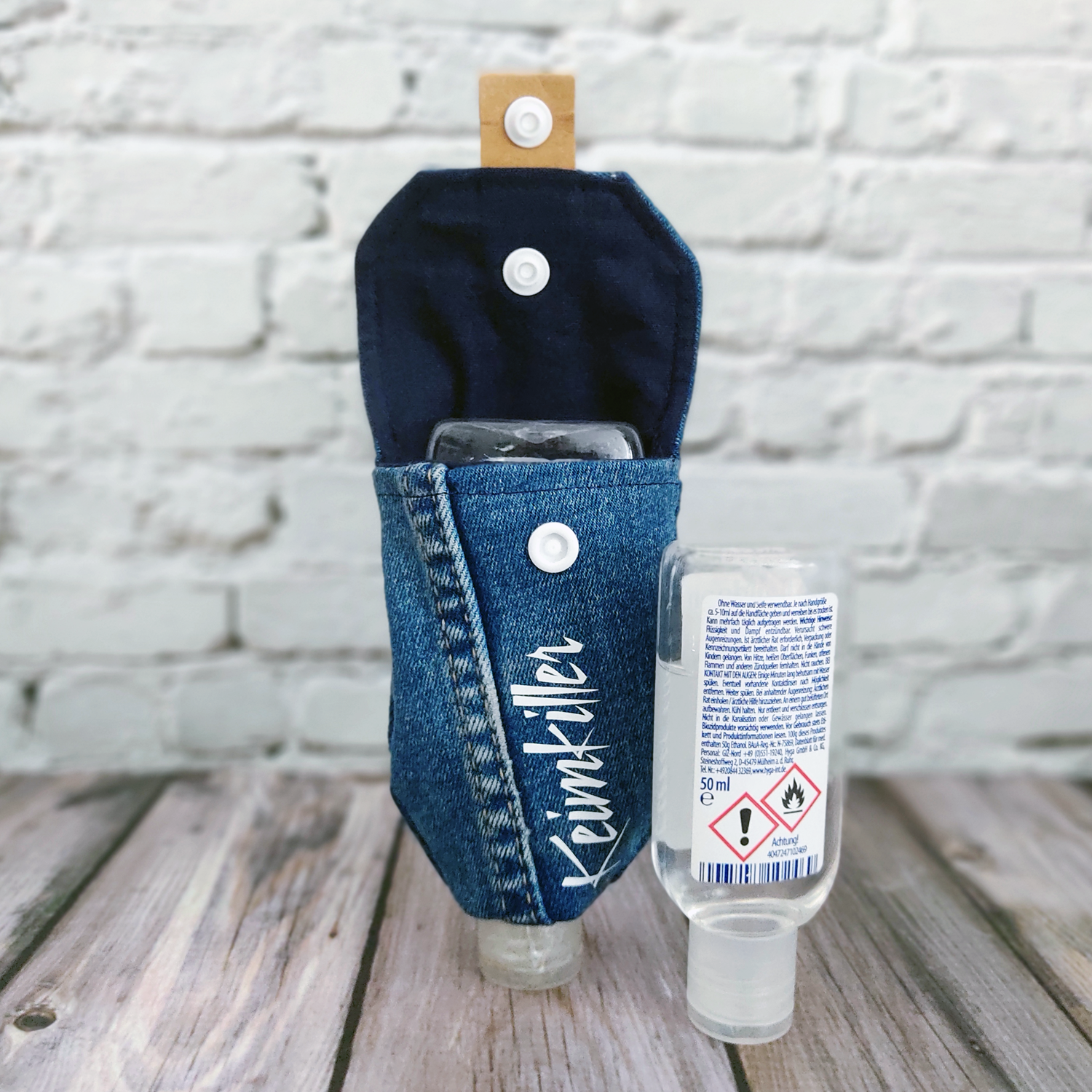 Handgel- / Desinfektionsmittel-Tasche | Keimkiller – bluejeans/white