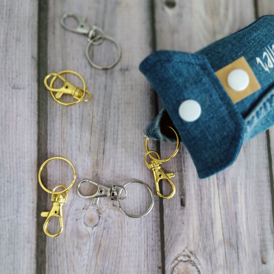 Praktisch für unterwegs: Mit optionalem Karabiner in Gold- oder Silberoptik, perfekt zum Anhängen an Rucksack, Handtasche oder Kinderwagen.