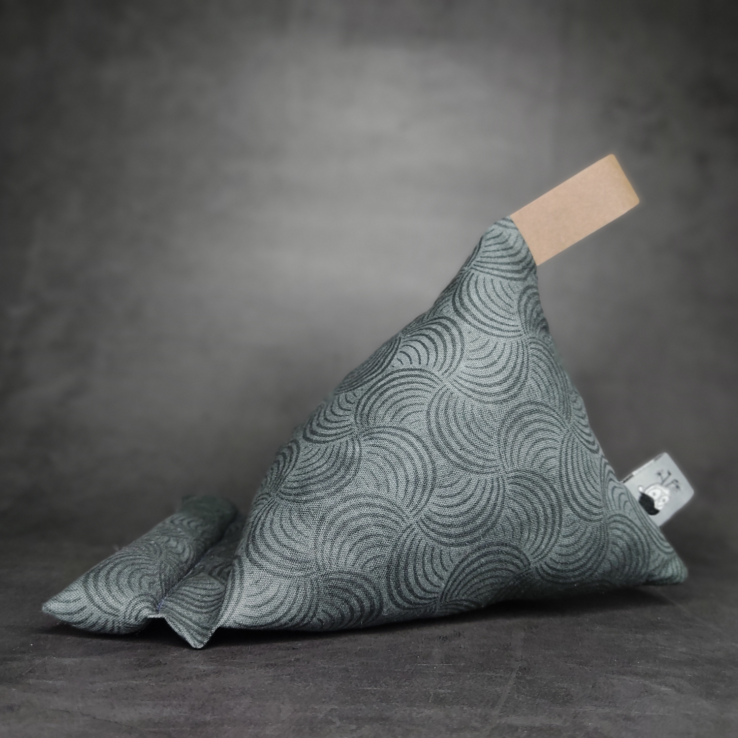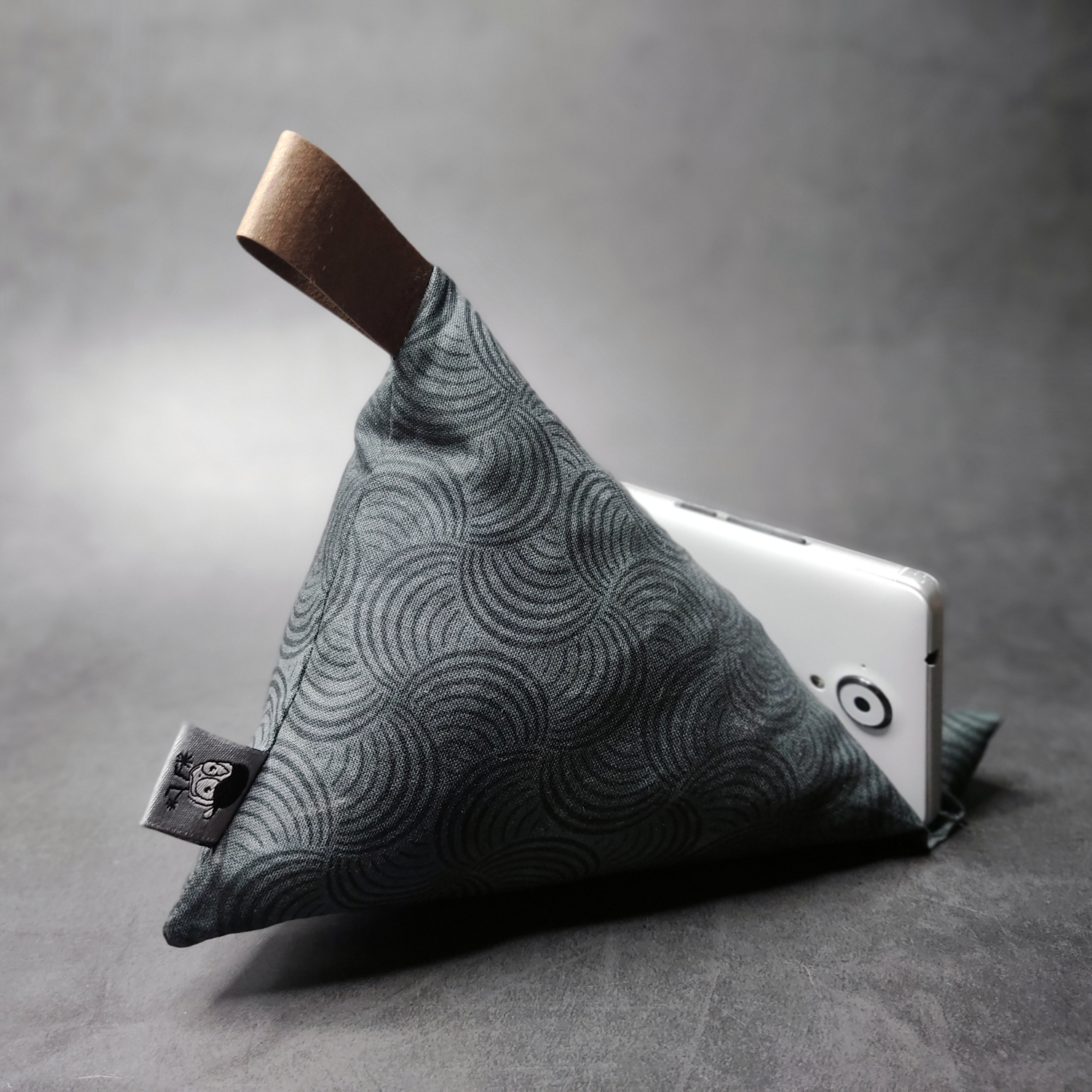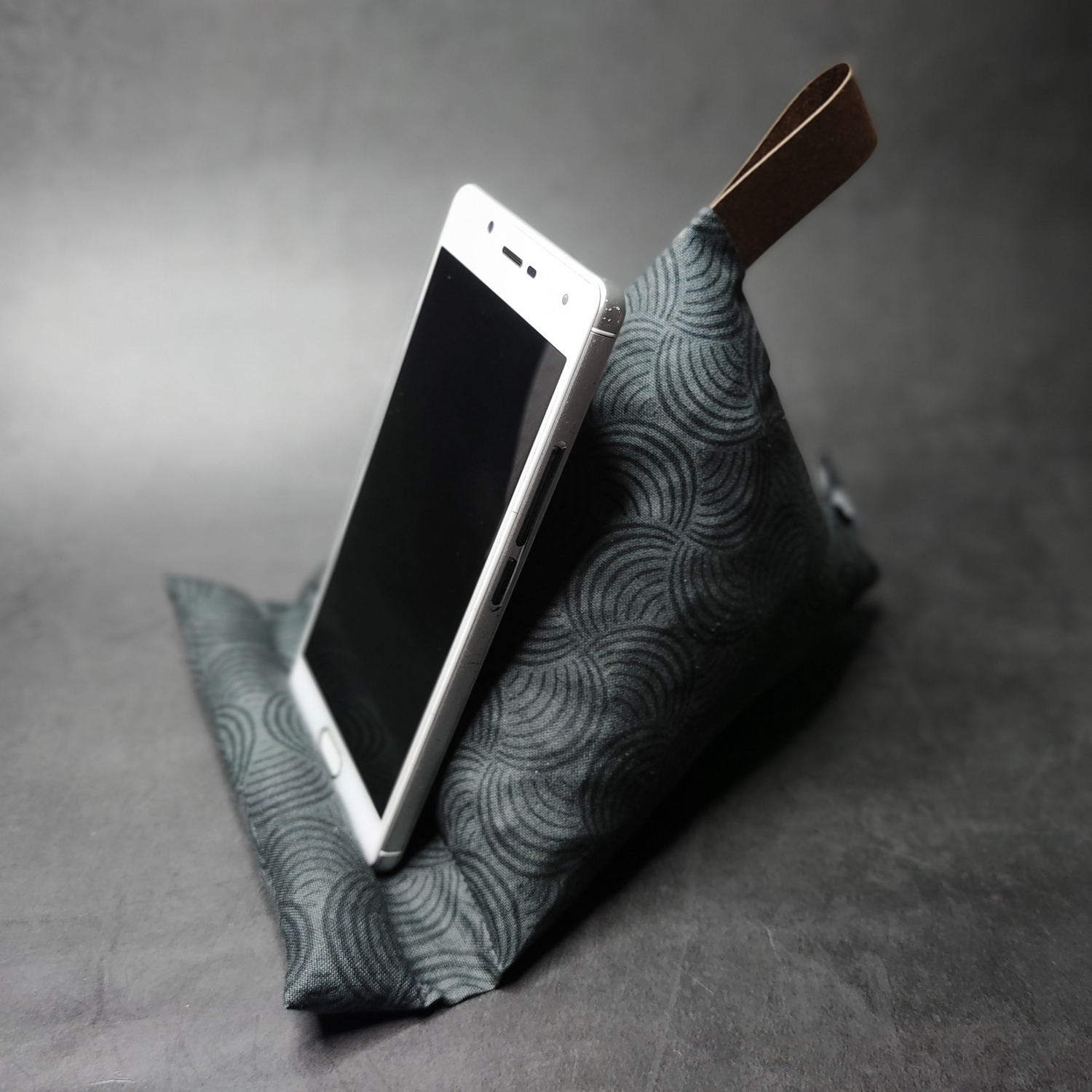 Handykissen in Schwarz/Anthrazit mit einem grafischen Muster bedruckt auf wunderschönem, griffigen Baumwollstoff.