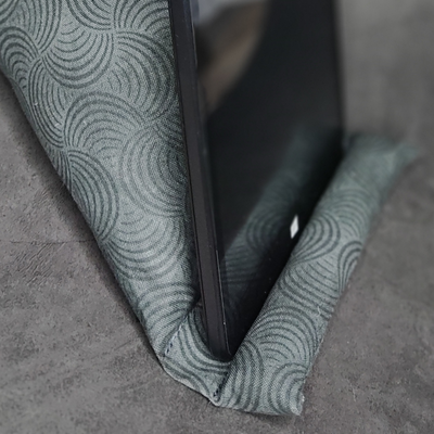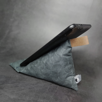 Die ideale Stütze für dein Smartphone, kleine Tablets bis ca. 7 Zoll und kleine / leichte Bücher. Das Handy kann waagrecht oder senkrecht auf dem Sitzkissen platziert werden. Super praktisch am Arbeitsplatz, bei Video-Calls im Büro, zum Filme schauen Zuhause oder einfach als Ruhekissen auf dem Nachtschrank. Mit der kleinen Schlaufe aus waschbaren Papier (SnapPap*) ist es schnell gepackt und überall platziert. Gefüllt ist das Kissen mit einer Mischung aus Kirschkernen und Füllwatte. Dadurch hat er ein gutes und angenehmes Gewicht und hält dein Smartphone sicher am Platz.