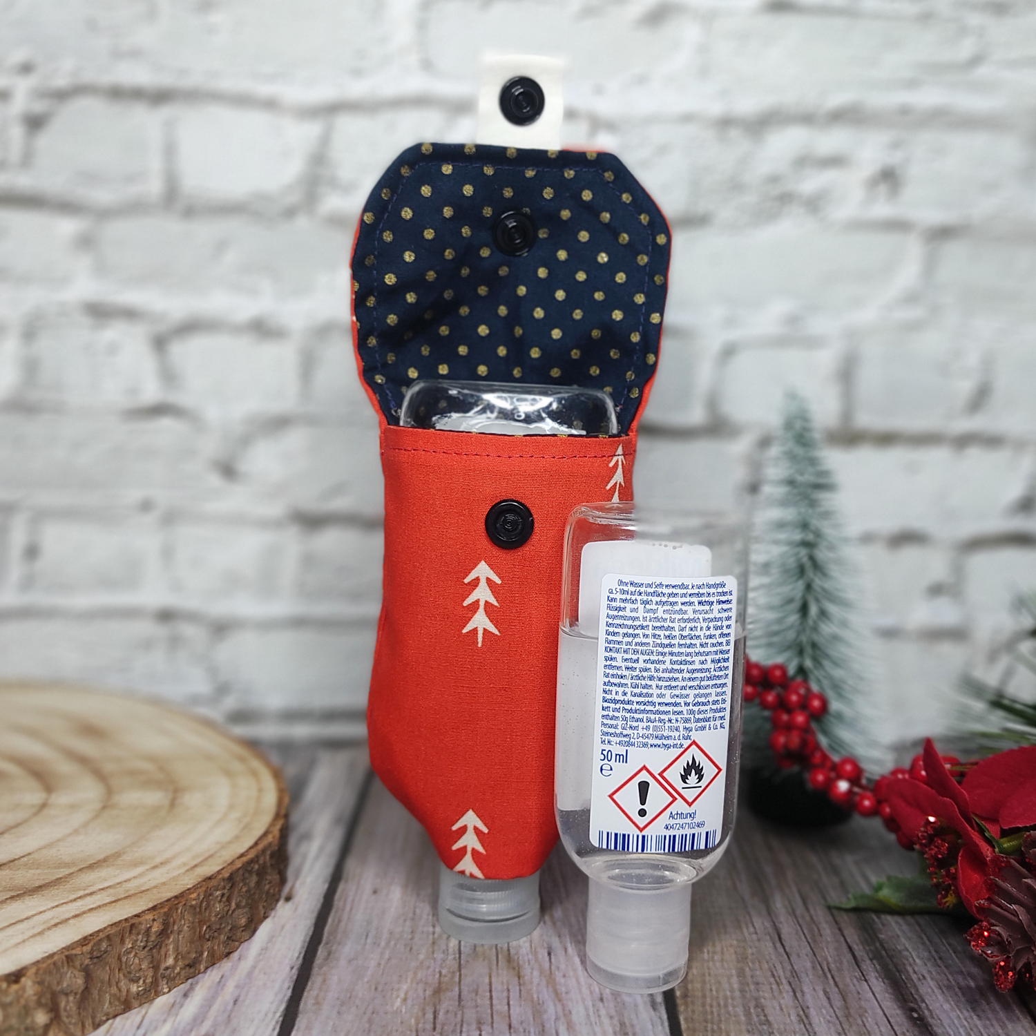 X-Mas Desinfektionsmittel Tasche | Skandic trees on red